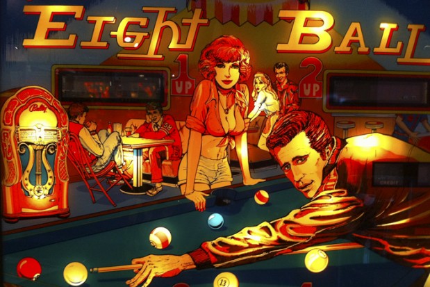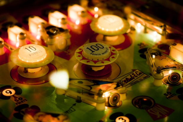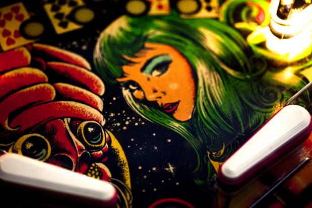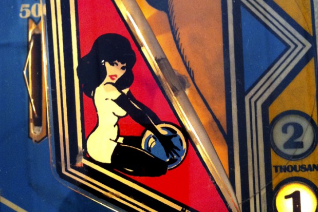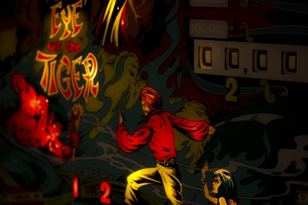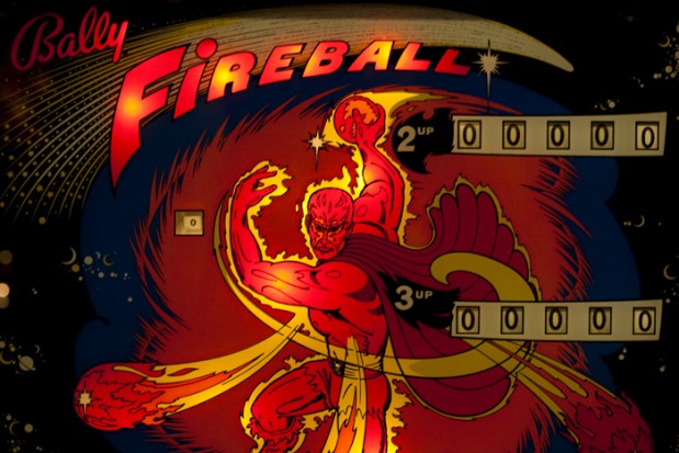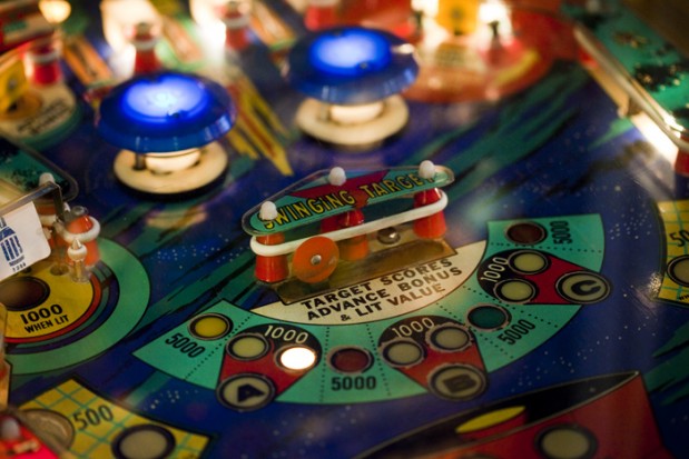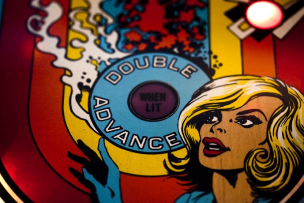 The Silverball was a cacophony of ringing bells, thudding flippers and clicking score tallies. Ilvento weaved us through a sizeable crowd of patrons to show us the highlights, from the antique bagatelles to the first machine he purchased, a 1967 Bally Dixieland. When we come to a stop in front of a 1977 Evel Knievel machine, his excitement was palpable. Not only was this machine his personal favorite, it was also the rarest in his collection.