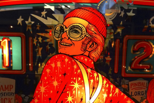 Chuck: I was really impressed by the amount of rock band based pinball machines that have been put out over the years. In my uncle’s basement, there was a 1977 pinball machine based on Elton John’s character in Tommy from Bally, called Captain Fantastic and the Brown Dirt Cowboy. As if that wasn’t strange enough, it turns out a completely different Captain Fantastic was released in 1975. How do I know? It was on display at the Silverball.