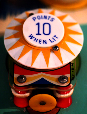 The collection is almost shockingly deep. The oldest game on display (unfortunately unplayable, as it is still being restored) is a 1932 Bally Ballyhoo, a largely non-mechanical, tabletop gravity game. The player uses a spring-loaded plunger to launch a metal ball up a wooden track. The ball then rolls down the playing field, bouncing off metal pins (from which modern tables would later derive their name) and, hopefully, landing in one of the holes in the board labeled with a high point value. Overall, it is not unlike Plinko from the Price is Right.