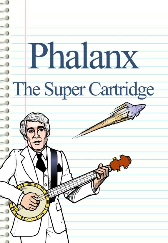 Now of course I do love the whole “man playing banjo while spaceship flies by” motif, but I can see why this cover is despised: the layout stinks! Let’s try using the winning Master System grid layout, and maybe just to hedge our bets we’ll replace that old nobody they have playing banjo on the original cover with the most famous banjo player in the world: Mr. Steve Martin!