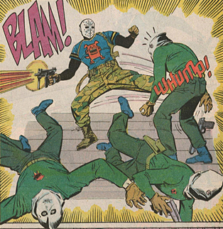 A kick to the nuts aside, Max Allan Collins, Terry Beatty and company take the time to showcase some technological marvels like electroshock gloves and bulletproof vests that allow the everyday person to appear to have the powers of Superman. I thought this was going on a lot in Batman at the same time, but maybe they thought there were comic readers who were more interested in Jason Voorhees with a machine gun than Batman.