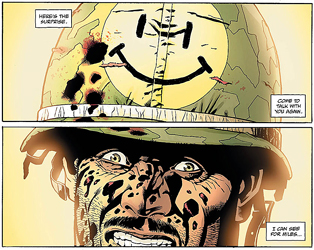 We start with a demolished Vietnamese village and then go backwards in time to see its destruction. What we learn is that Edward Blake on drugs is as bad as Edward Blake off drugs. When Eddie drops some acid, he goes on a killing spree – much like Eddie without any acid. And here is where Comedian falls flat. The character has not budged from his one-dimensional niche this entire series. All we’ve seen – save for a few interactions with famous people like Marilyn Monroe and the Kennedys – is Edward Blake doing exactly what we expect of him.