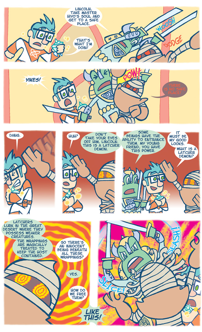 Entrancing Latcher Demons is a skill you can’t learn. You have to be born with it. Luckily for Lincoln, he was. Luckily for the innocent creature trapped by the Latcher Demon, Quog has crazy skills with those swords. He’s like a surgeon slicing through those wrappings. Next week we’ll see what poor creature has been trapped by Zage.