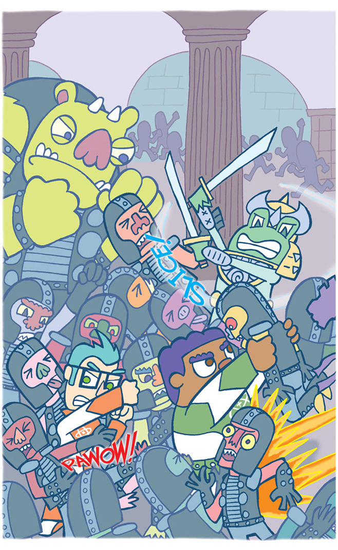 It’s fight time in the Beartooth castle! Two-page spreads are loads of fun to draw. I definitely have to do more of these in future books.