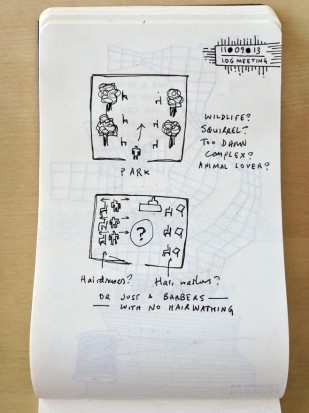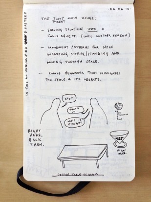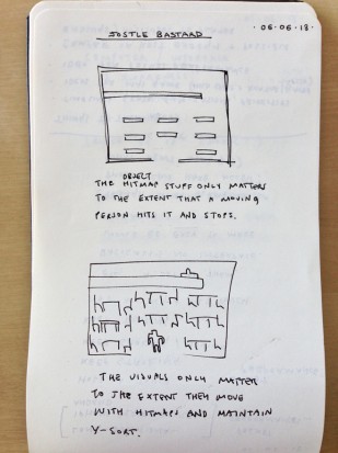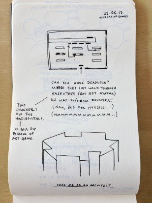 For Pippin Barr, it is the scribbles and doodles in an unruled reporter’s notebook that mark the birth and refinement of Jostle Bastard.