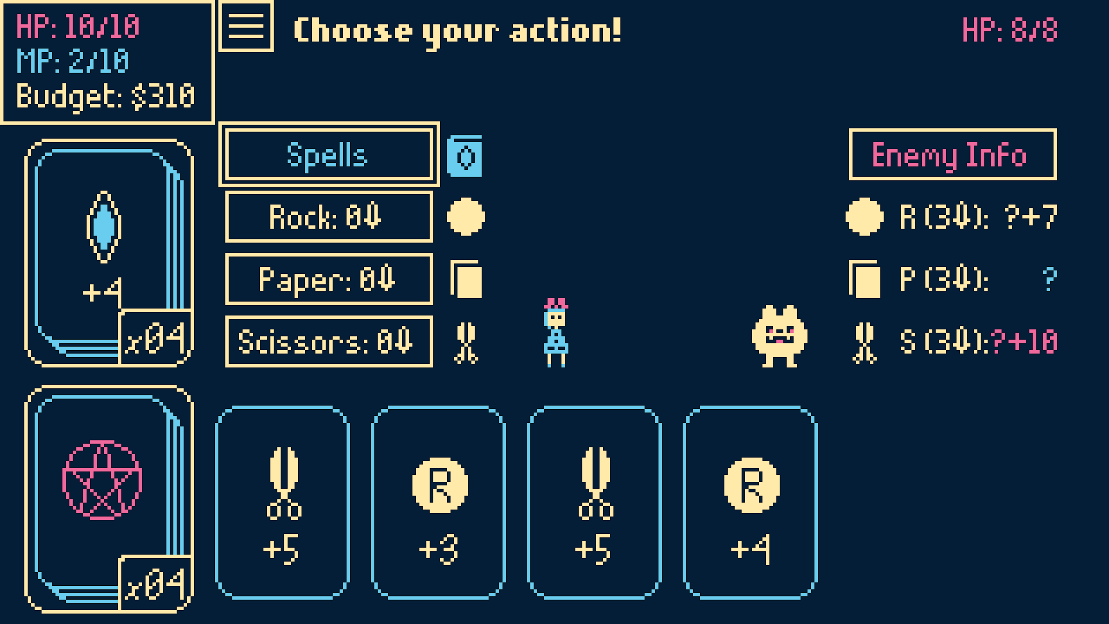 That Cassandra has no innate magical abilities—aside from the means to cast very elementary spells—didn’t deter the plucky young oracle though. What she could bring to the table, however, is her clairvoyance. To even the odds during enemy encounters, Cassandra relies on her fortune-telling cards. This ability is conveyed through intensive rounds of rock paper scissors with her opponents, which serves as a combat system that involve countering their moves with the right cards, and then whittling down their hit points to zero. Common office peripherals also double up as power-ups for augmenting her deck with: a filing cabinet determines the order of her cards; a printer can produce additional cards; and a microwave—probably the most indispensable of appliances for the typical office worker—imbues her cards with stronger properties.
